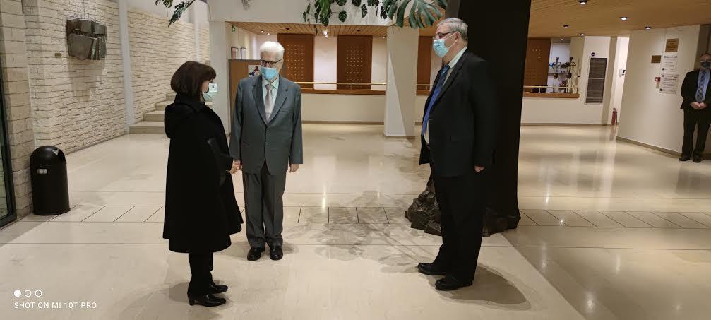 Πρωτόγνωρη ήταν η εικόνα στο Πνευματικό Κέντρο του δήμου Ιωαννιτών, όπου πριν από λίγη ώρα ολοκληρώθηκε η πανηγυρική εκδήλωση για την απελευθέρωση της πόλης των Ιωαννίνων, παρουσία της Προέδρου της Δημοκρατίας Κατερίνας Σακελλαροπούλου.