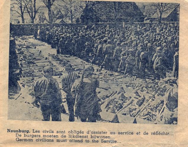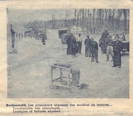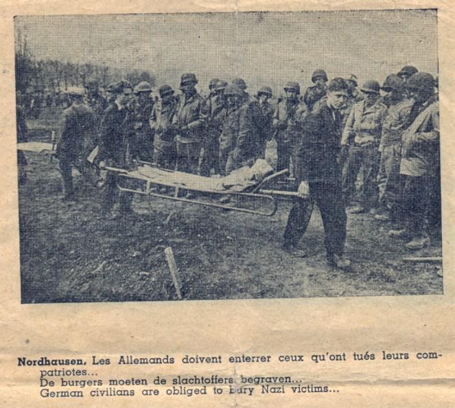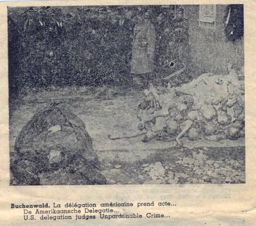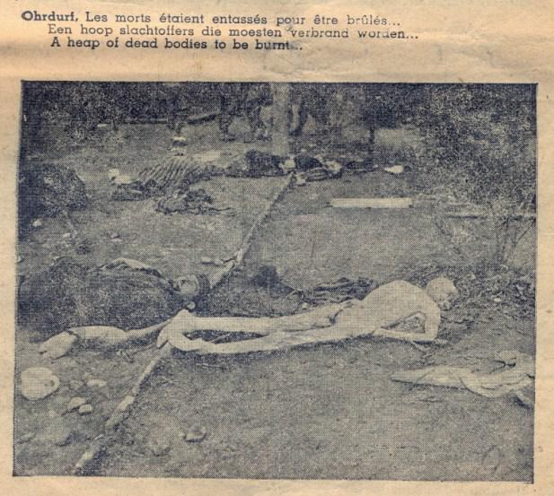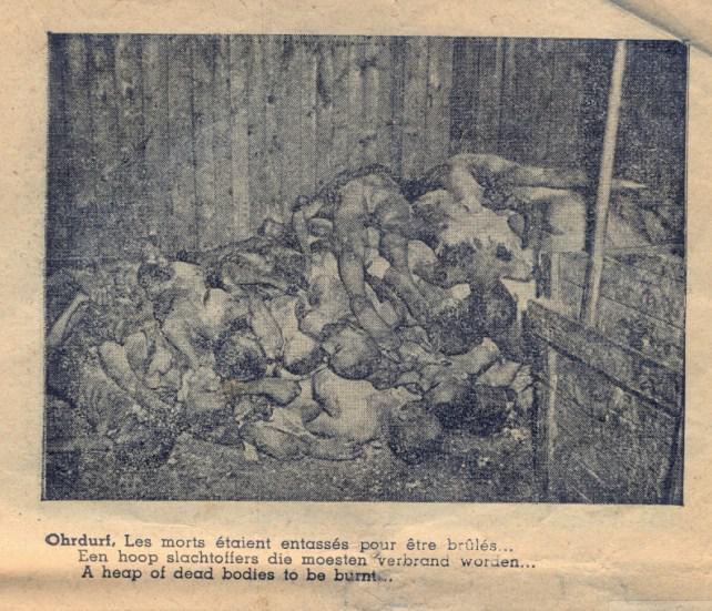 Σε κάθε σελίδα παρουσιάζονται ανά δύο οι φωτογραφίες, στις οποίες αναγράφεται ένας υπότιτλος στη γαλλική, τη γερμανική και την αγγλική γλώσσα, ενώ ακολουθεί σύντομη περιγραφή της κάθε φωτογραφίας και η περιοχή τοποθεσίας του στρατοπέδου συγκέντρωσης: Belsen, Flossenburg, Nordhausen, Buchenwald, Essen , Dachau, Ohrduuf, Neunburg, Landsberg, Murneau, Gardenlagen, Lipzig.