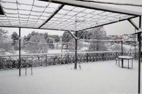 Ωστόσο, φωτογραφίσαμε ξανά το χιόνι, που έπεσε στη διάρκεια της νύχτας και των πρώτων ωρών του πρωινού. Όσο ήταν φρέσκο και απάτητο, το απολαύσαμε, κι ας μας τα χάλασαν νωρίς η βροχή και η καταιγίδα.
