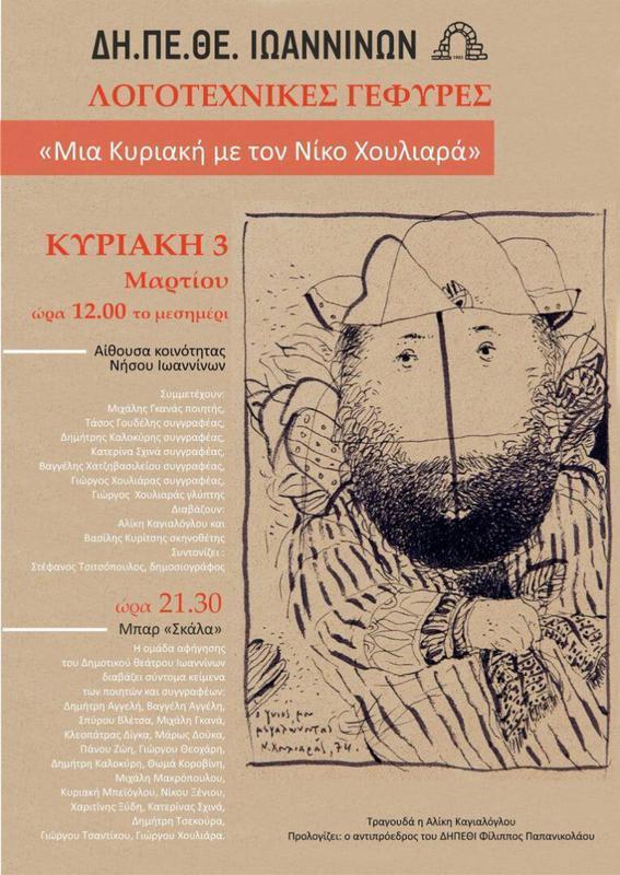 Τα κείμενα γράφτηκαν με αφορμή το αφιέρωμα στον Νίκο Χουλιαρά. Τραγουδά η Αλίκη Καγιαλόγλου. Θα προλογίσει ο αντιπρόεδρος του ΔΗΠΕΘE Φίλιππος Παπανικολάου. Την καλλιτεχνική επιμέλεια έχει η καλλιτεχνική διευθύντρια του ΔΗΠΕΘΕ Ιωαννίνων Ελένη Δημοπούλου.